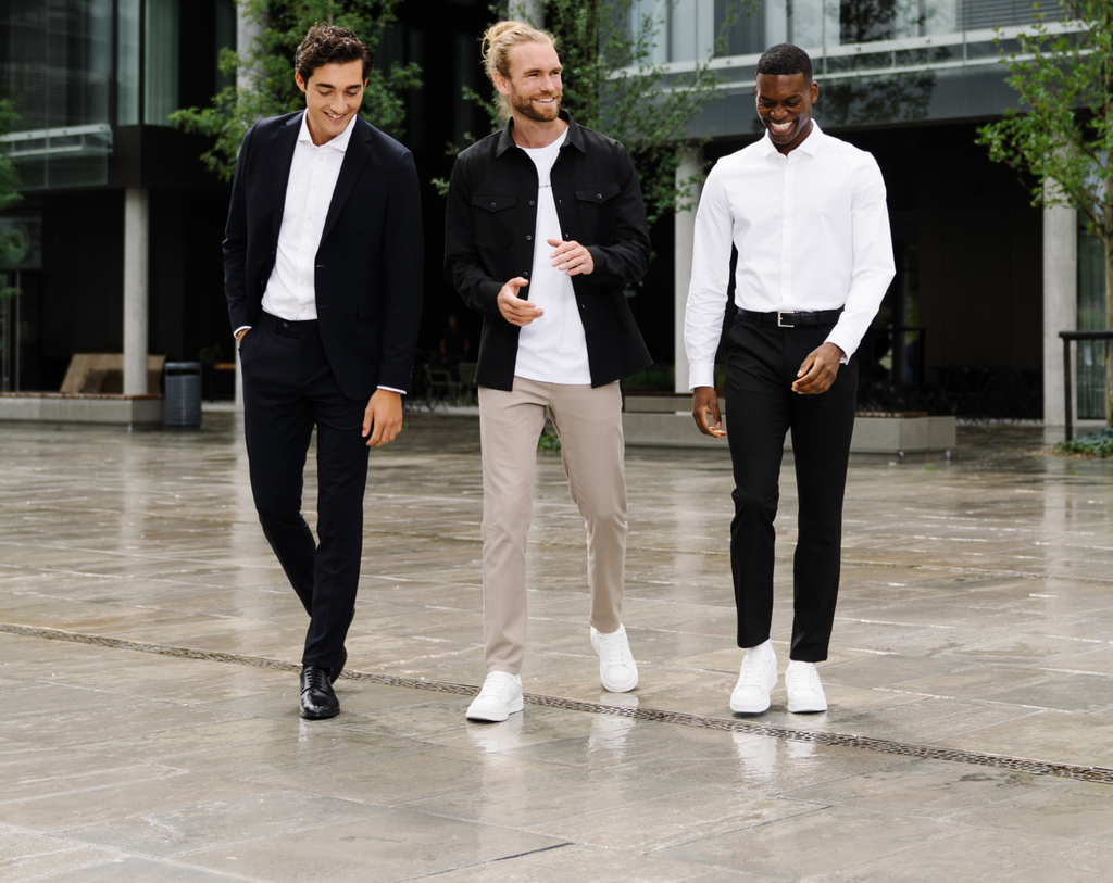 Helt siden begynnelsen har vårt overordnede mål vært klart og tydelig. Vi ønsker å skape perfeke herreklær. For oss er det helt nødvendig å kombinere design og komfort for å sørge for at garderoben vår går overens med det aktive livet de fleste av oss lever i dag. Det er derimot ikke noe som skjer over natten. Vi har brukt masse tid og krefter på å komme dit vi er i dag. Derfor er vi stolte av å kunne presentere vårt brede og allsidige sortiment som representerer kuluminasjonen av den harde jobben vi har lagt ned. I tillegg til vårt hjertebarn - The Perfect Pants - finner du også skjorter, shorts, blazere, dresser og mye mer fra SHAPING NEW TOMORROW, som alle representerer de verdiene som har vært drivkreftene i vår utviklingsreise.