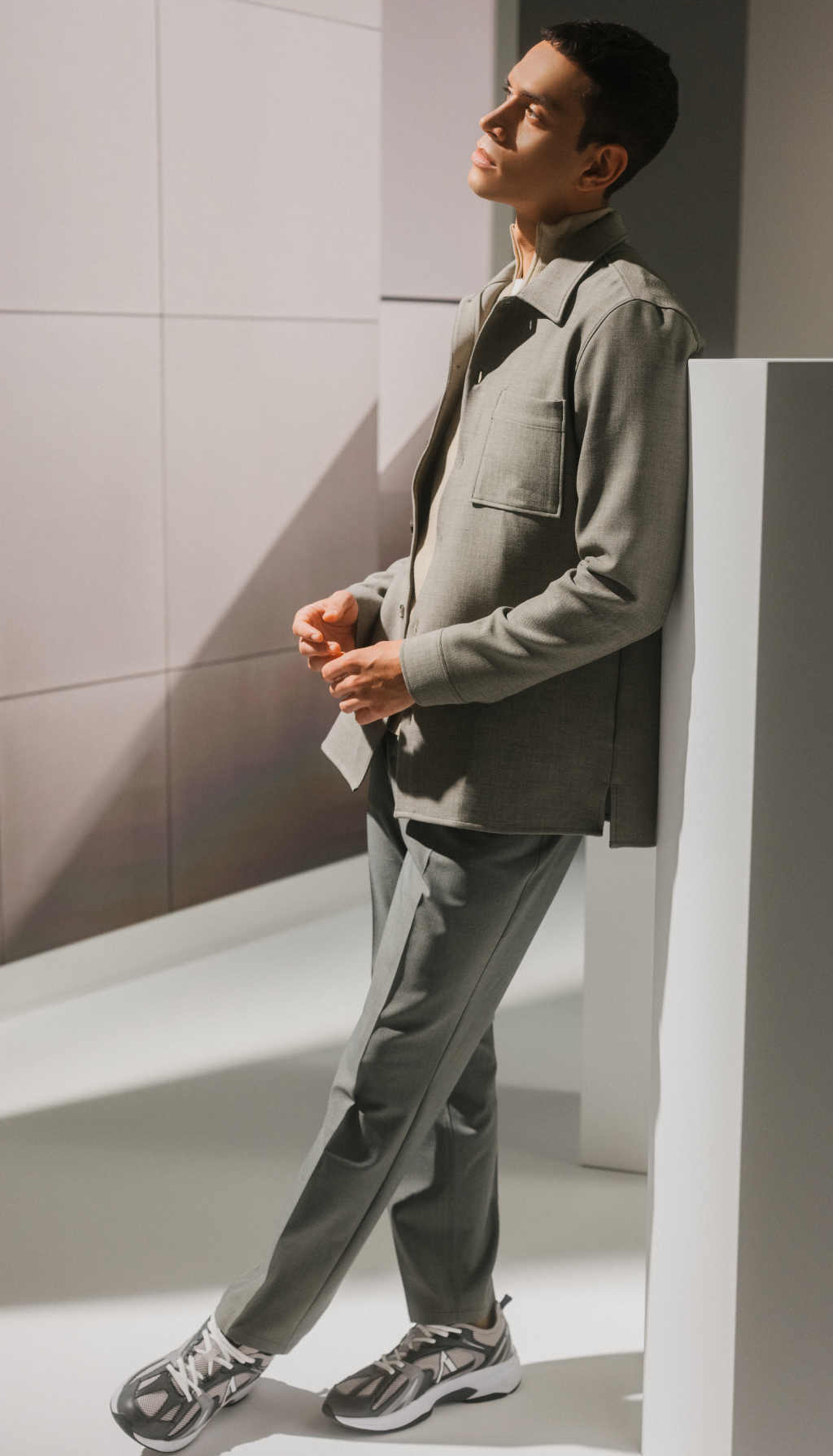 Vi vet godt at herremote ikke er immun ovenfor utvikling. Vår innfallsvinkel er å være i forkant og møte evolusjonen av fasjonabelt design annerledes enn andre. Helt siden vi startet opp har vi gått mot strømmen av merker som ønsker å påvrike mote ved å basere seg på samtidens tendenser. Vi tar ett skritt tilbake og har definert vår egen identitet ved å fokusere på å forbedre de essensielle elementene i den klassiske herregarderoben. Alt som bærer navnet SHAPING NEW TOMORROW er et innovativt og moderne alternativ til konvensjonelle herreklær, som ofte kan føles stivt og hemmende å ha på. Vår tilnærming til evolusjonen av herremote medbringer derfor en unik følelse av frihet til klassisk herretøy.
