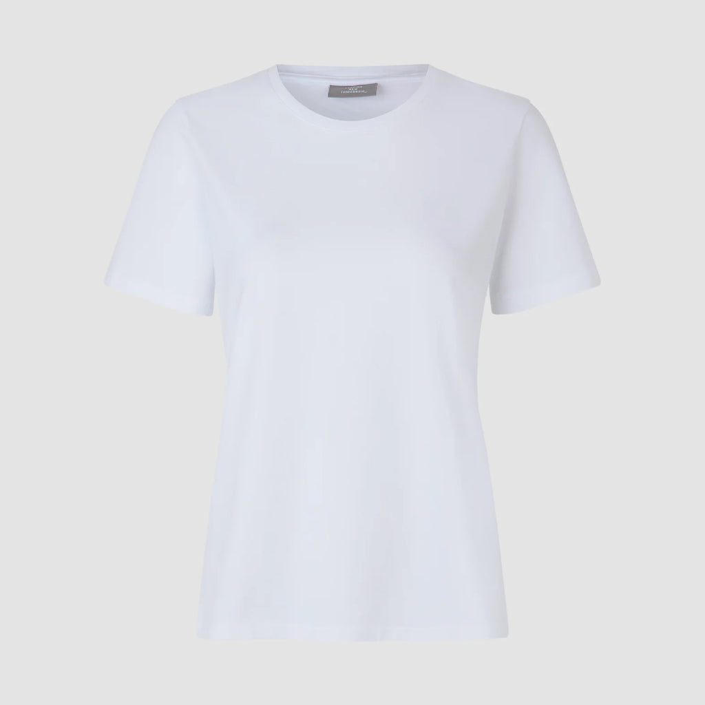 Man kan aldri få for mange T-shirts. Vår er laget av den mykeste Supima-bomullen som er utrolig behagelig å ha på, og som har en sterk og glatt overflate som gir den en luksuriøs følelse. Den har alt man trenger i et basisplagg, og den finnes i mange forskjellige farger - det er bare å velge hennes favoritt.