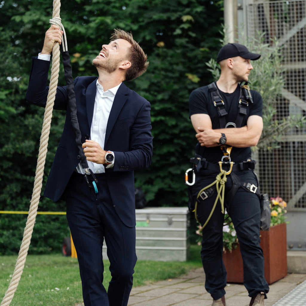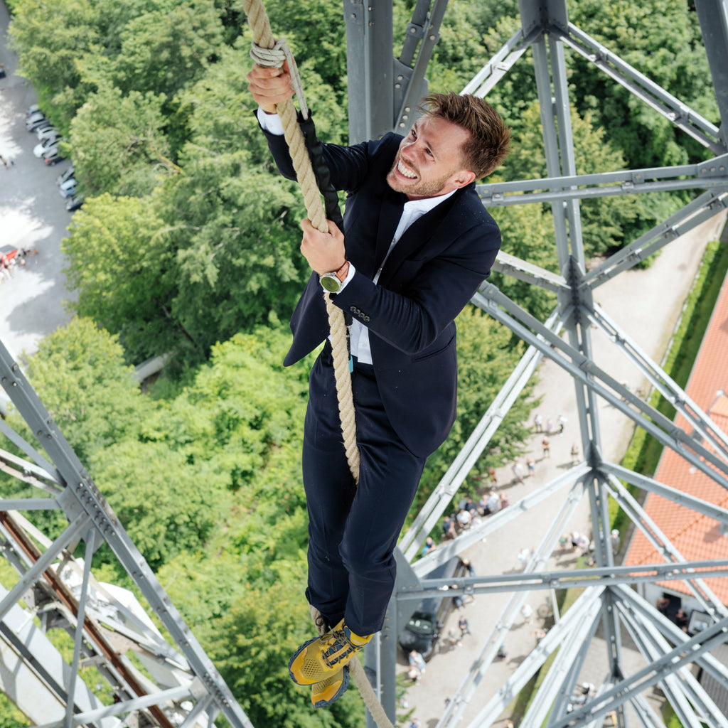 Etter å ha forberedt seg på utfordringen som venter, sikrer Leons mangeårige samarbeidspartner, Urban Ranger Camp, ham i tauet og sørger for sikkerheten hans under hele klatringen. Sikret og komfortabelt påkledd begynner han oppstigningen.
