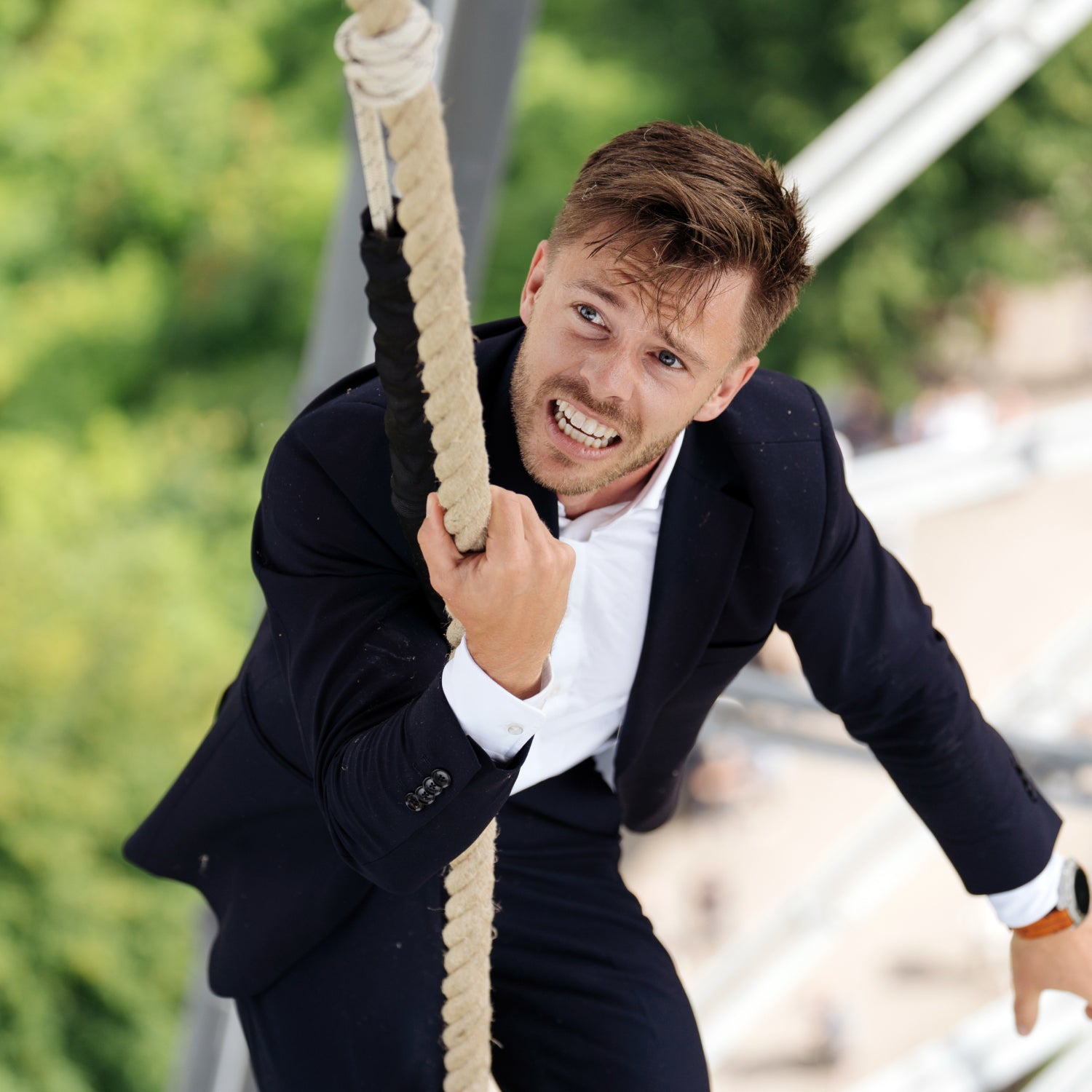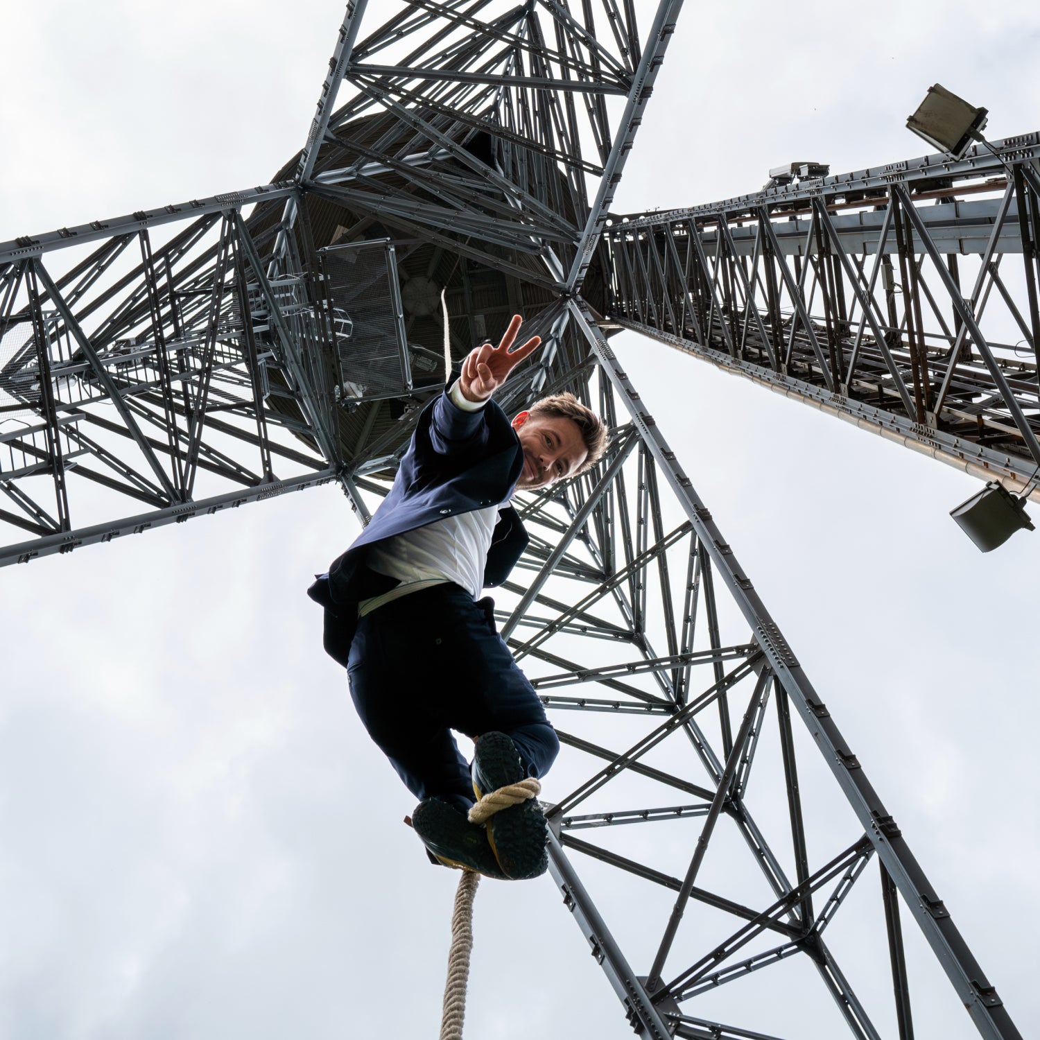 Leon ønsker å presse seg selv til det ytterste, og tar derfor på seg den fryktinngytende utfordringen med å klatre hele 50 meter for å nå toppen av Aalborgtårnet, kun ved hjelp av et frittstående tau – alt mens han er iført vår Essential Suit.