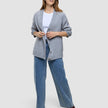 For et uttrykk som både er avslappet og stilfullt, kan du style vår Chunky Soft Wool Knit Cardigan i Medium Grey Melange over en hvit Rib T-shirt. Legg til de avslappede jeansene i Snow Blue Wash, og bind det hele sammen med et smalt belte med sølvspenne for et sofistikert touch.