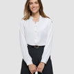 Et look som kombinerer klassisk eleganse med moderne minimalisme. Den hvite Vienna Blouse gir et rent og tidløst uttrykk, mens de svarte Avira Wide Pants skaper et sofistikert fundament. Et slankt skinnbelte med gullfarget spenne binder antrekket sammen og tilfører et raffinert touch.