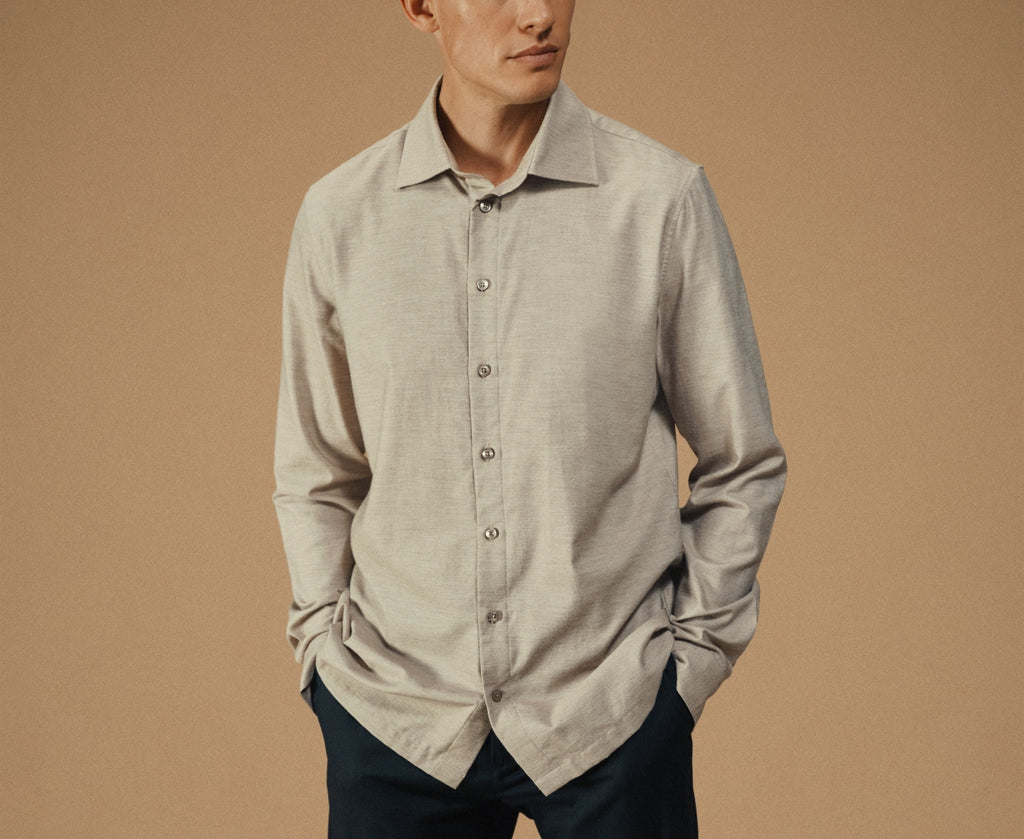 Lett børstet og supermyk - denne mellomvektige flanellen kombinerer pustende bomull med et hint av kashmir. Enkel å style i lag, enkel å elske - perfekt for kjølige dager og hverdagsbruk.