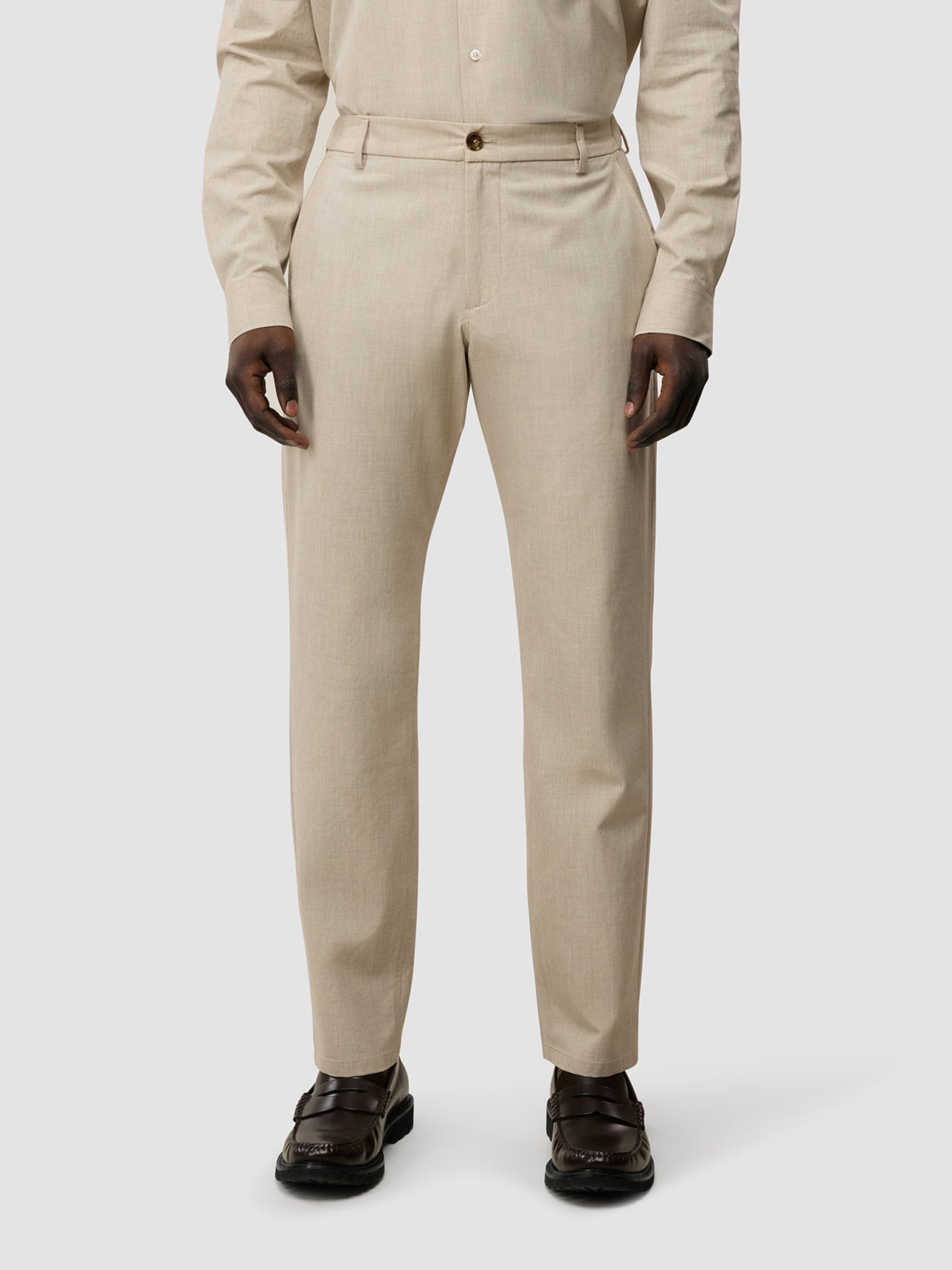 Hos SHAPING NEW TOMORROW drømte vi om å designe den perfekte sommerbuksen. Vi hadde ingrediensene til The Perfect Pants, sånn at de skulle være minst like komfortable og stilfulle. Helt spesifikt ville vi gjerne lage et par sommerbukser med optimal komfort på de varme sommerdagene, uten å gå på kompromiss med stil og utseende. Vi var på jakt etter et materiale som hadde samme pusteevne og letthet som lin, men som samtidig kunne oppgraderes med noen av våre elskede tekniske komponenter.