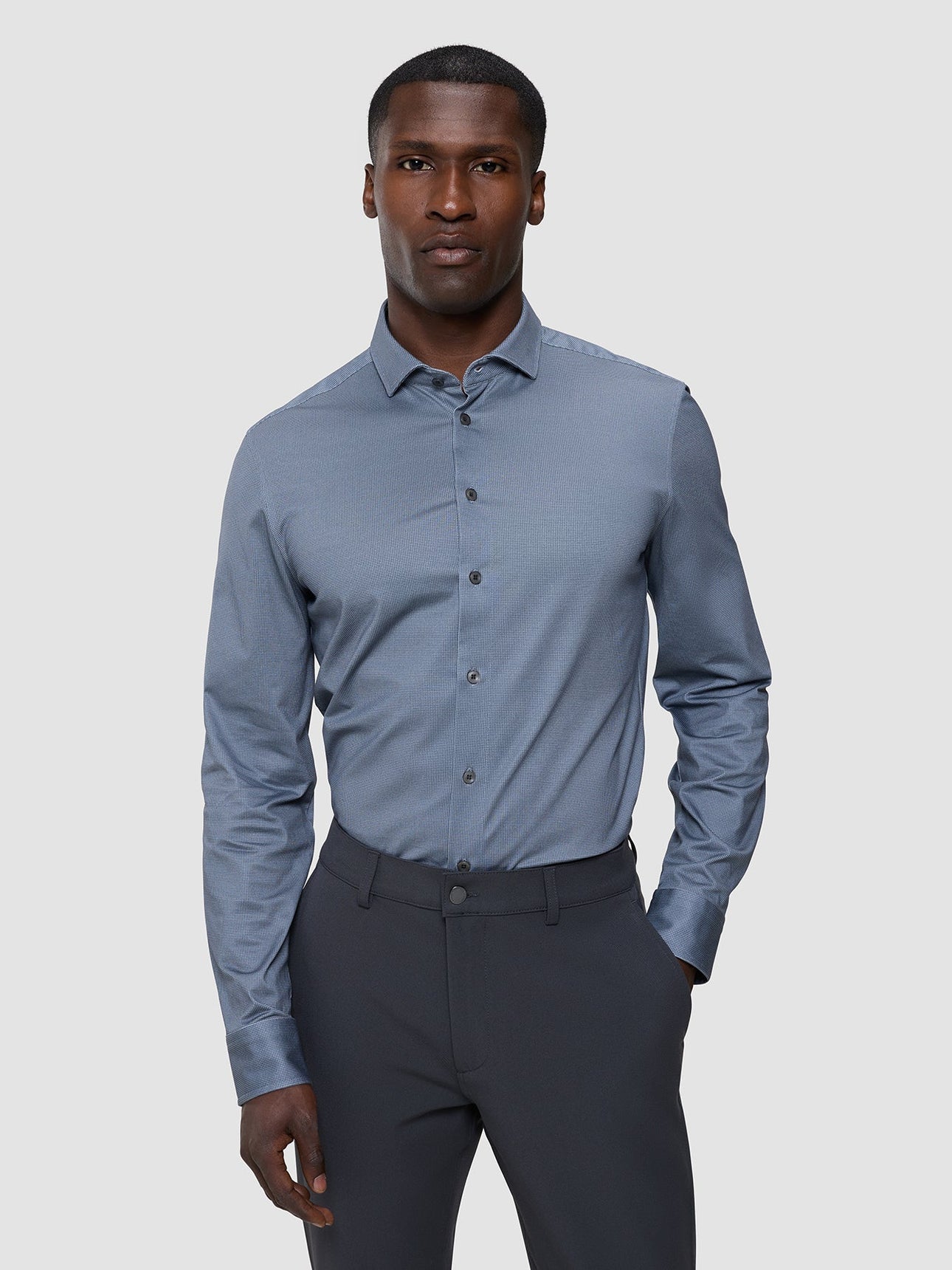 Vår tilnærming til å lage de innovative skjortene til menn er nesten identisk med prosessen vi var gjennom da vi lagde våre karakteristiske chinos, The Perfect Pants, og en rekke andre av våre innovative produkter. Vi har gjort nøye undersøkelser av den grunnleggende utformingen av en moderne herreskjorte og sett på om vi kan bruke en ny materialkombinasjon og produksjonsmetode som kan gi oss nøyaktig det vi ønsker. Vi visste fra tidligere at det ville være åpenbart å tilsette en viss mengde elastan til herreskjortene, som er et av materialene som brukes flittig i noen av de beste sportsklærne. For med en moderne livsstil er det irriterende at du ikke kan være aktiv bare fordi du har på deg en skjorte og kanskje er redd for å ødelegge den ved å gjøre visse bevegelser.