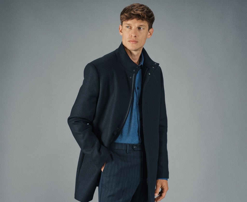 - Premium italiensk ullblanding med fôr i resirkulert polyester