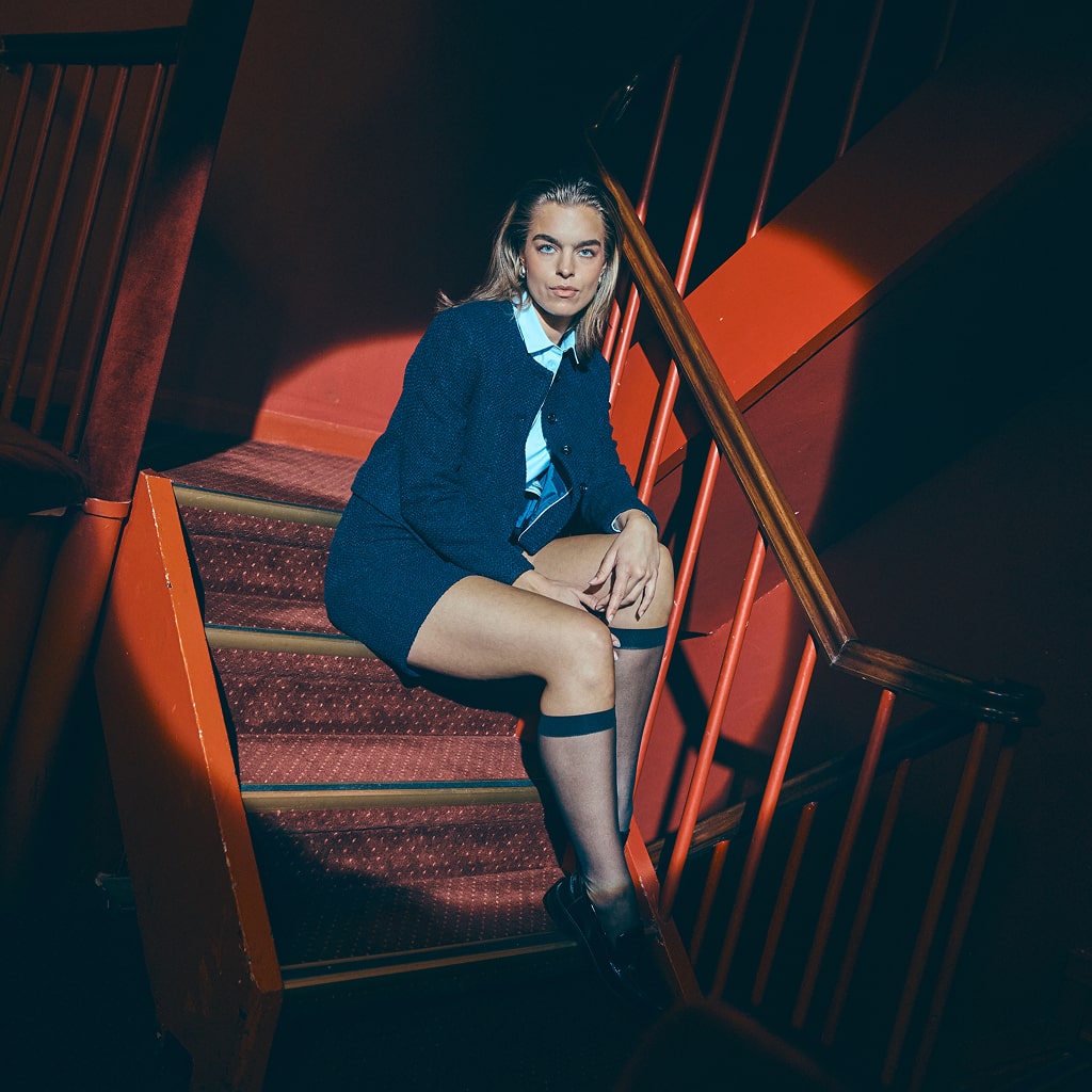 Serene-materialet har et matt ullutseende og en viss tyngde, slik at det faller vakkert i myke folder og gir en flatterende silhuett. Det er enkelt å style med andre materialer, noe som gir dybde og tekstur til ethvert antrekk