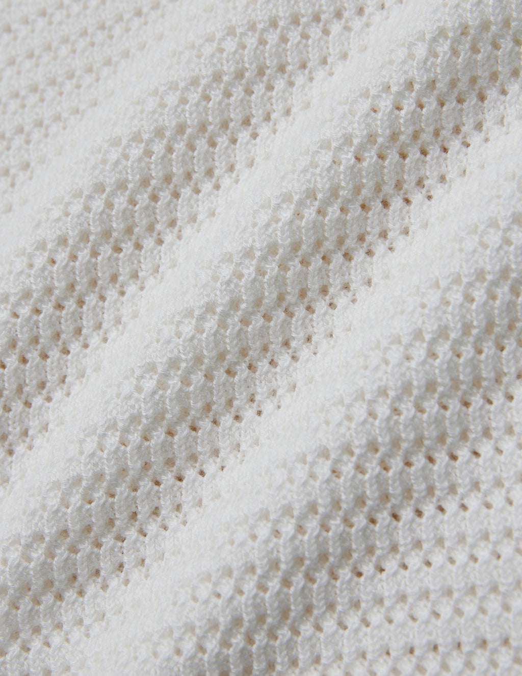 Dette finstrikkede materialet kombinerer pustende bomull med supermyk TENCEL™ Modal – for en tekstur som føles lett, smidig og aldri stiv. Med sitt vakre fall og formstabile materiale holder den det elegante uttrykket – vask etter vask.