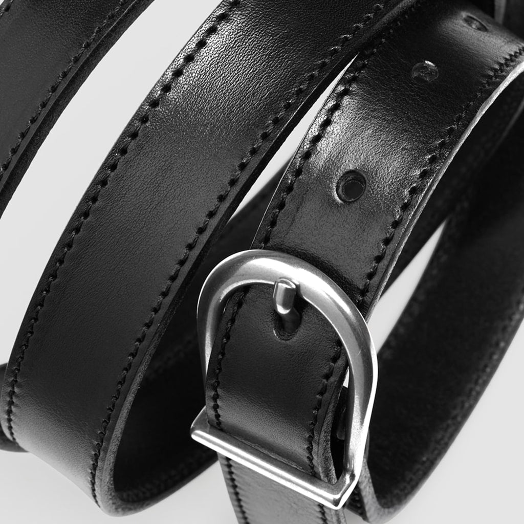 Vårt Thin Leather Belt er laget av 100% skinn og fås med spenne i enten sølv eller gull.